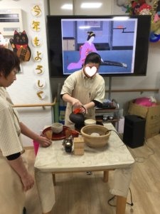 令和2年 お正月 一年の初めと言えば 初釜でございます。 毎年ですが、お正月 楽しみなのは、初釜でございます。 スタッフのお点前から、今年は 利用者様に・・・・ これもまた利用者様の笑顔が最高です~ すみません 投稿が3月 桜も咲きそうなときに お正月の話題でございました。
